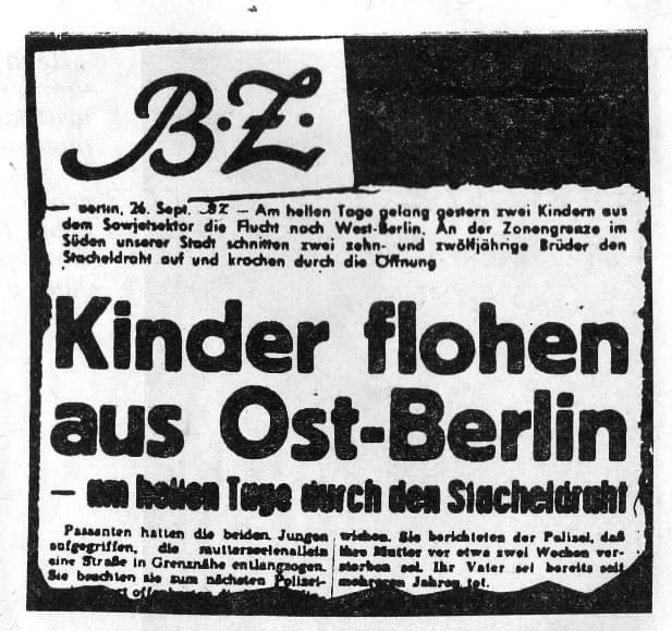 • „Децата бягат от Източен Берлин“ се наричаше една от сензациите на Шпрингеровия „Билдцайтунг“ (тираж 5 милиона екземпляра) от 26 септември 1961 г. Под това заглавие на две колони вестникът разказва покъртителната история на две братчета, едното на десет, другото на дванадесет години. Първо починал баща им, след това и майката. Изминали две седмици от нейната смърт, а за сирачетата никой не се погрижил. Те потърсили спасение в Западен Берлин и там в полицията описали неволите си. На другия ден след поместването на тази трогателна история се оказа, че децата били от Западен Берлин и избягали от родителите си.