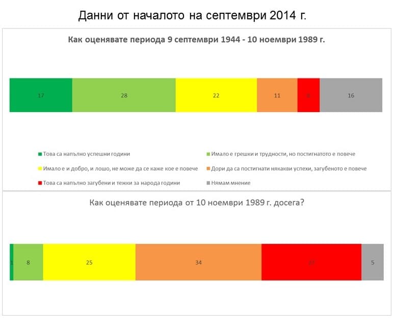 Сравнението на постиженията на икономическите системите на съветския социализъм и западния капитализъм, което споменах в началото бе написано преди тези анкети да бъдат направени и публикувани и показва, че усещането на населението за „ония времена“ не е просто „носталгия“, както се опитват да го обяснят днешните политически и социологически корифеи, а има сериозна фактологическа основа. Тогава обаче не разполагах с данни за България и използвах почти изцяло данни за Русия и РСФСР. Днес, благодарение на проф. Иван Ангелов имам данни и за България. Нека припомня, че проф. Иван Ангелов не е случаен човек. Той е един от авторите на прословутия план“Ран-Ът“, член кореспондент на БАН. В момента обаче изглежда е променил позициите си и отявлено критикува българския преход. Е, човек има право да греши. В момента проф. Ангелов няма никакви шансове да привлече вниманието на която и да било българска партия или да извлече някаква полза от позицията, която е заел, и затова може да му се вярва. Данните съм взел от неговата публикация „Разгромът на българската икономика“ (3), която горещо препоръчвам и която споделя многократно споменаваната на този сайт теза за вредата от свободния пазар. Разбира се, числата на проф. Ангелов са извадени от официални статистически справочници на България.