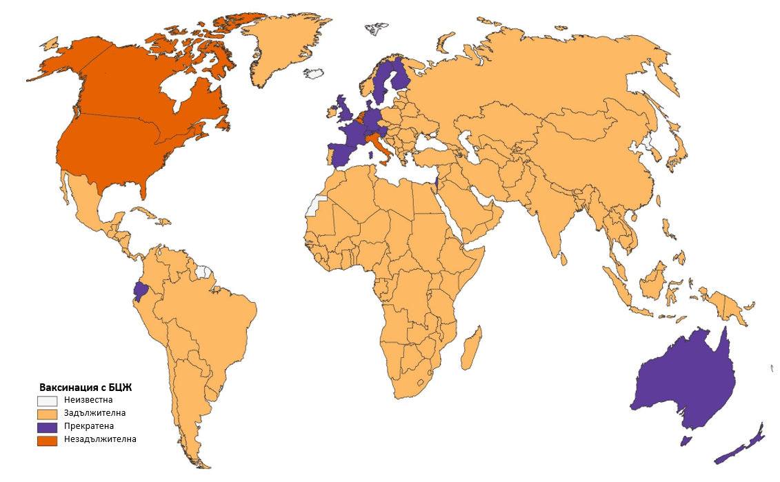 Като гледаме географското разположение на страните от Фигура 5, то вероятно можем да изключим климата като съществен фактор. Разделителната линия запад-изток изглежда по-вероятна. Според едно изследване (13), отново в медицинския архив, се твърди, че страните със задължително имунизиране против туберкулоза с БЦЖ ваксина показват много по-малка степен на заразяване от страните, в които ваксинирането не е задължително или е прекратено. Границата на задължително прилагане на БЦЖ ваксината минава точно между запад и изток (14). Социалистическото минало за пореден път ни спасява.