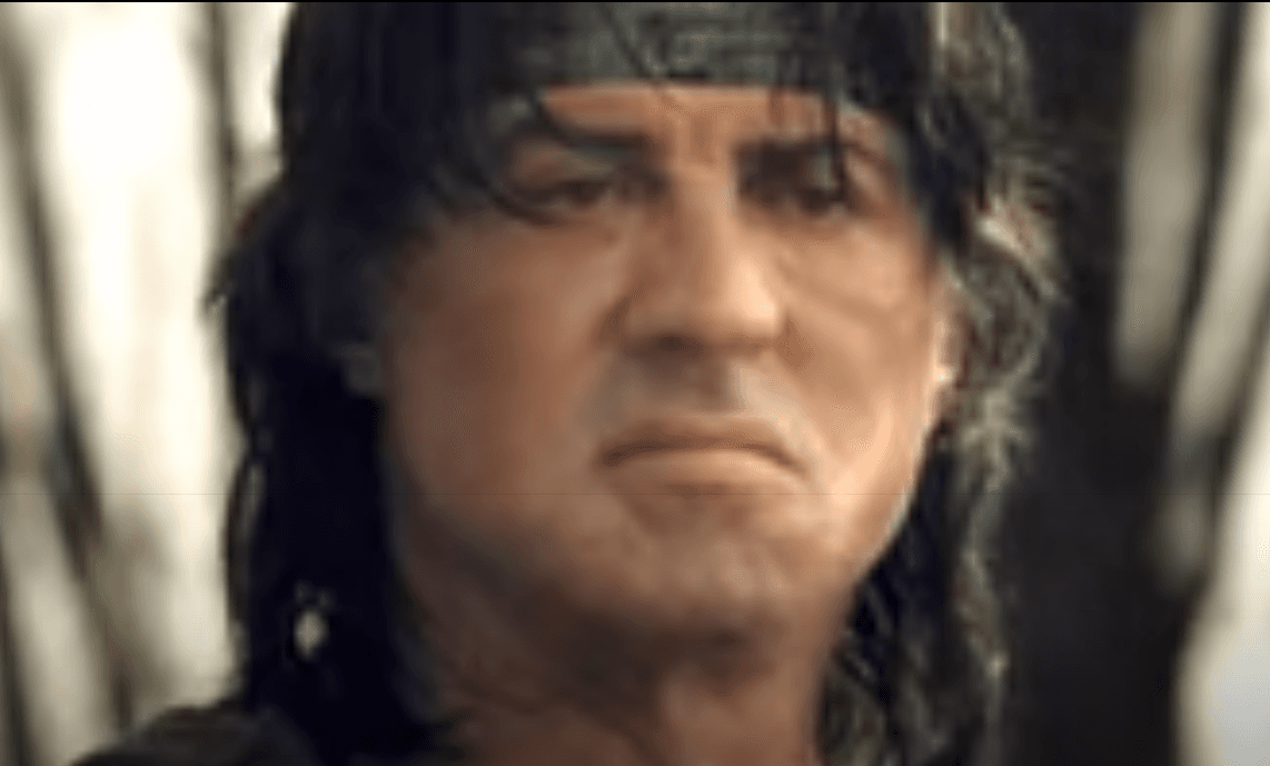 Ония от нас които си спомнят първите серии на Рамбо ще отбележат, че Рамбо е пораснал ... малко (1). Вече не е момченцето дето умее да върти ножове и автомати, но още се напикава в гащите и чака полковника да му каже какво да прави. Прецакан от живота, както обикновено, и сърдит на родителите си и на полковника, Рамбо лови змии някъде във Виетнам. (Физиономията на Сталоун е особено подходяща. Естествено сърдита, с прикрито превъзходство на знаещия над незнаещите. Не че Рамбо или Сталоун знаят нещо повече, само така си мислят.)