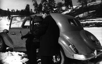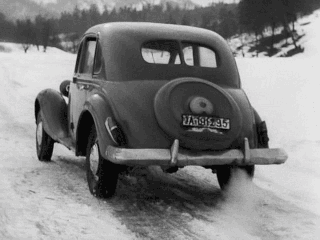 Търсенето в Интернет ме докара до няколко страници и няколко форума. Навсякъде като доказателство се посочва една единствена снимка (в ляво). Тя е може би кадър от 8-ма серия, минути 49-56 в които сменяйки няколко коли Щирлиц закарва пастор Шлаг в планината и го пуска да пресече швейцарската граница със ски. На снимката се виждат пастора, който обува ски-обувките седнал на задната седалка на колата и Щтирлиц до него. Колата, чийто номер е 21-47 ГРУ, е последната, която Щирлиц ползва за да закара пастора в планината. Тя не се появява на друго място във филма и не е колата на Щтирлиц.