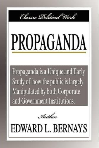 Класическа политическа творба ПРОПАГАНДА "Пропаганда" е уникално ранно изследване за това как обществото е масово манипулирано от корпоративните и правителствени институции. Автор: Едуард Л. Бернайс Filiquarian Publishing (2007) 136 стр. Първо издание 1923 година Едуард Бернайс е племенник на Зигмунд Фройд.